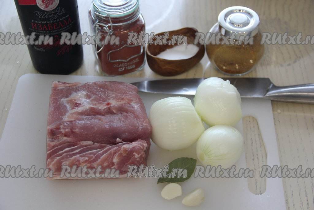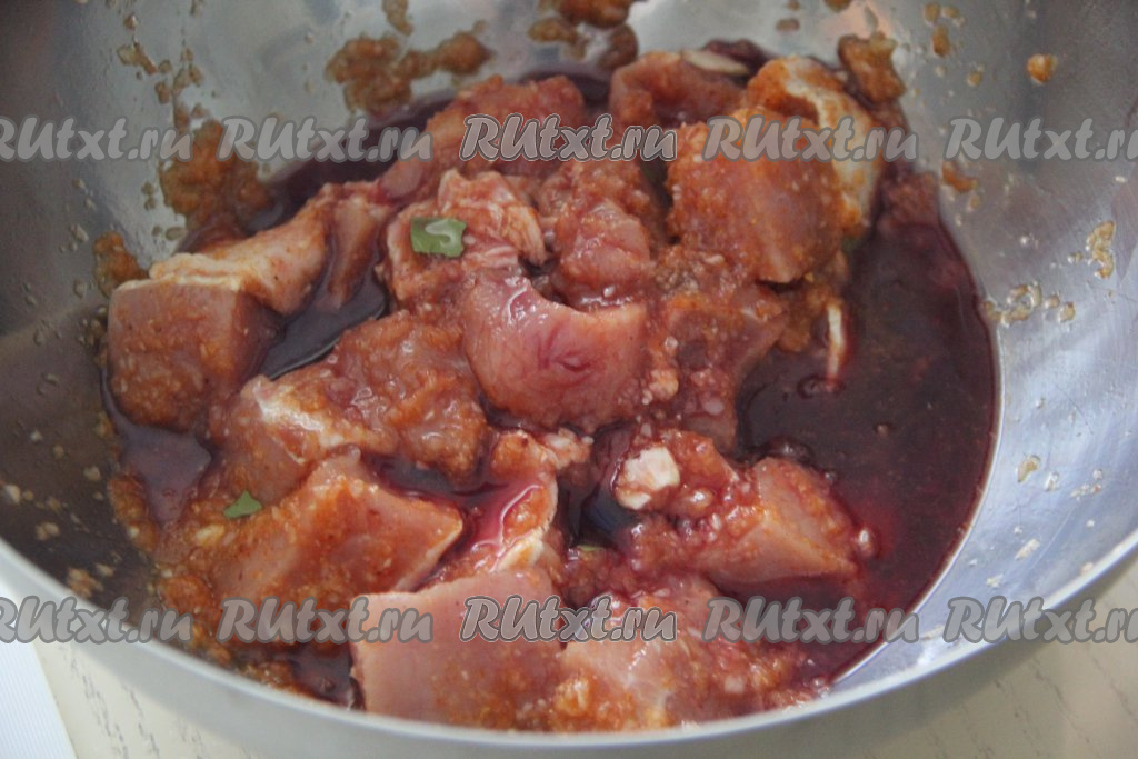 Оставить свинину в винном маринаде на 5 часов в прохладном месте.