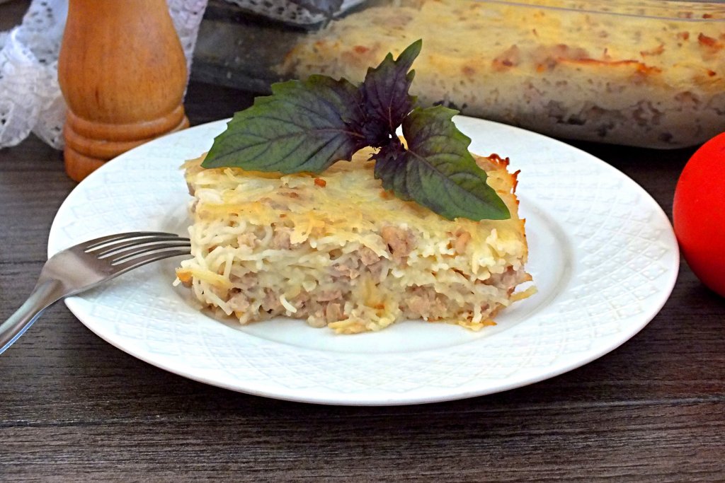 Если нужно накормить семью сытно и вкусно, приготовьте в духовке аппетитную запеканку с вермишелью и фаршем. Затратив немного активного времени, вы получите отличное блюдо, которое придётся по душе всем членам семьи. Для этой запеканки необходимо взять именно тонкую вермишель, а фарш подойдёт куриный или свиной. Приготовьте блюдо по этому рецепту и вы точно не разочаруетесь!