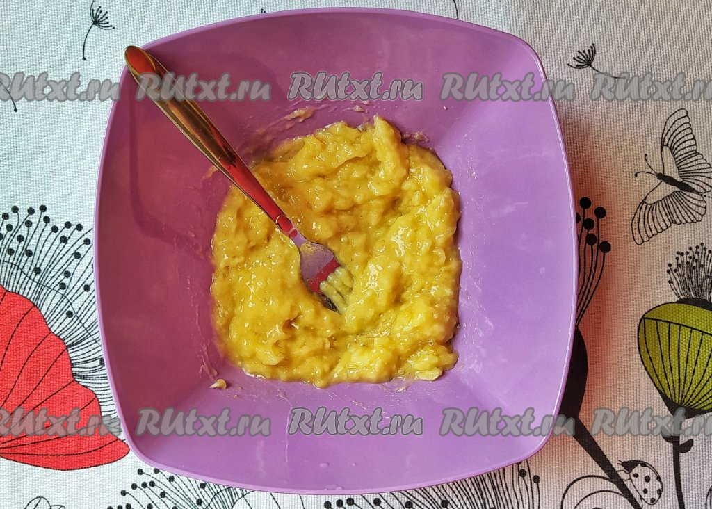 Бананы освободить от кожуры и размять вилкой до образования однородной массы.