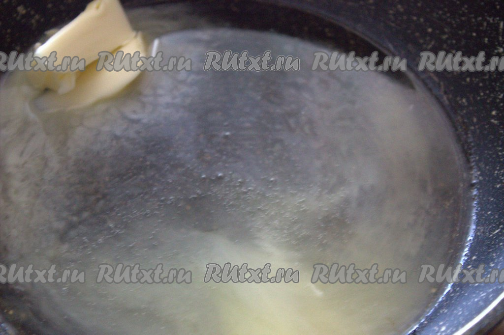 На хорошо разогретую сковороду влить растительное масло, затем добавить сливочное масло и растопить его.