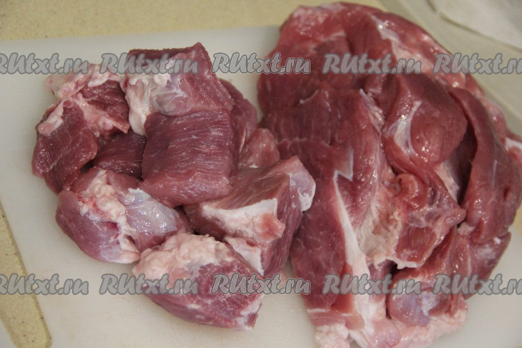 Свинину лучше взять с жирком или добавить грамм 100 сала. Нарезать свинину на кусочки и пропустить через мясорубку.