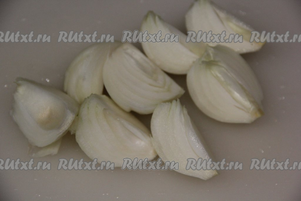 Лук почистить и нарезать на кусочки. В отдельную посуду тоже через мясорубку пропустить лук.