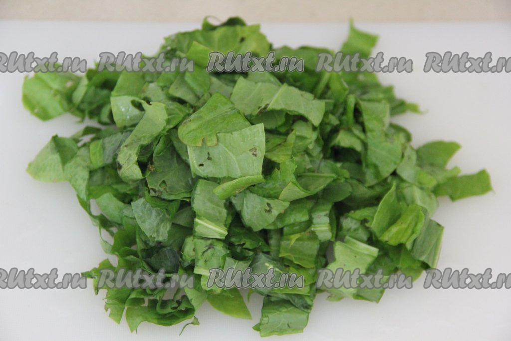 Щавель нарезать ножницами на полоски.