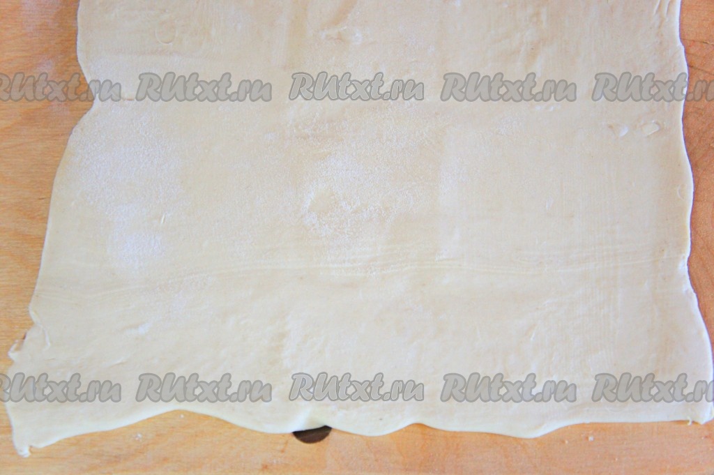 Тесто раскатать, но не очень тонко. При необходимости для удобства раскатывания теста "припылите" стол небольшим количеством муки.