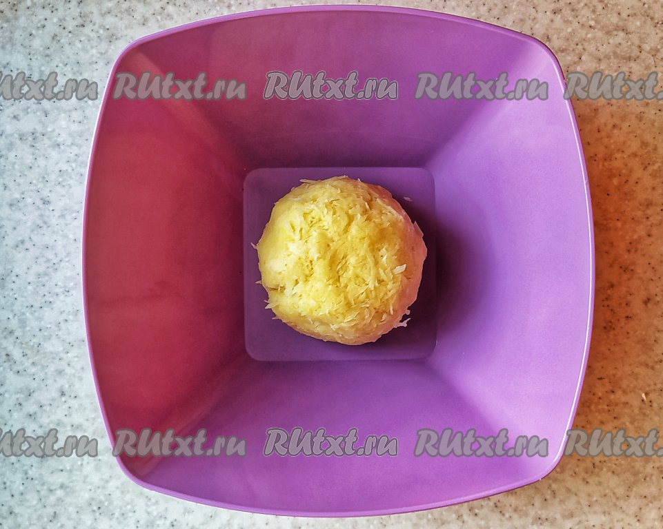 Тщательно перемешать. Картофельное тесто получится пластичным и плотным настолько, что сможет какое-то время удерживать вертикально воткнутую вилку.