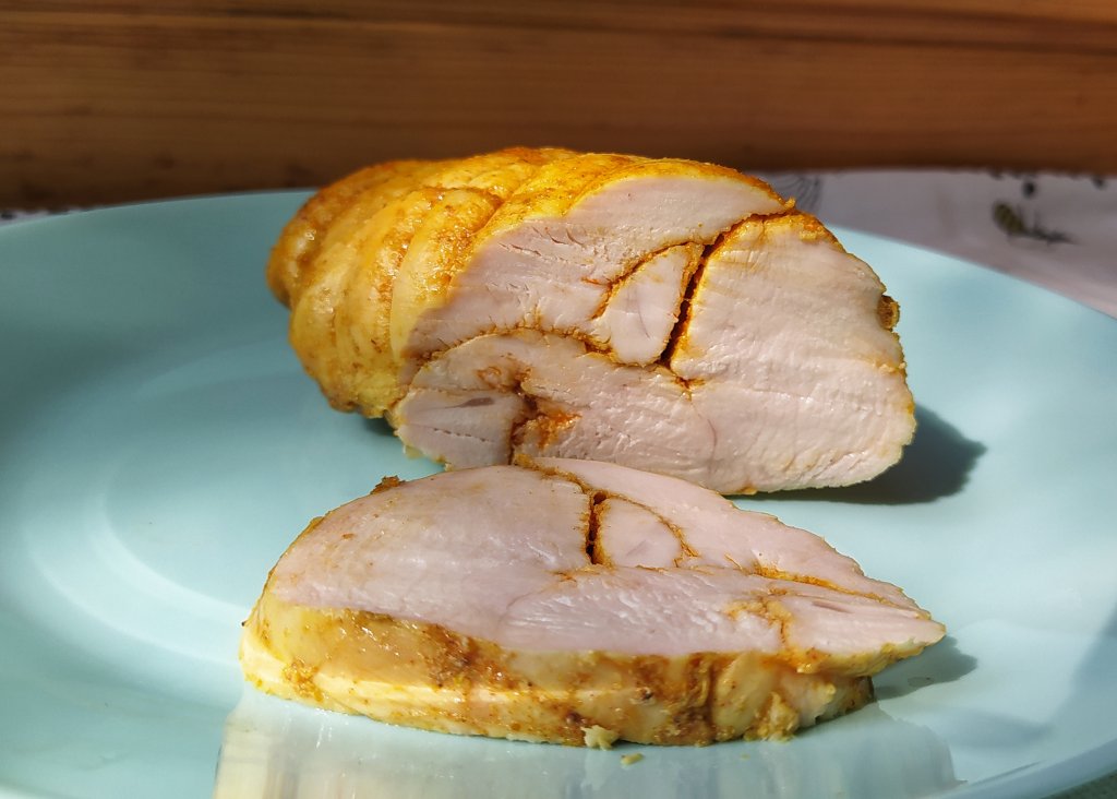 Я достала рулет из духовки спустя 4 часа и сразу убрала в холодильник на ночь. На утро были бесподобные бутерброды с ароматными, сочными и аппетитными куриными ломтиками.