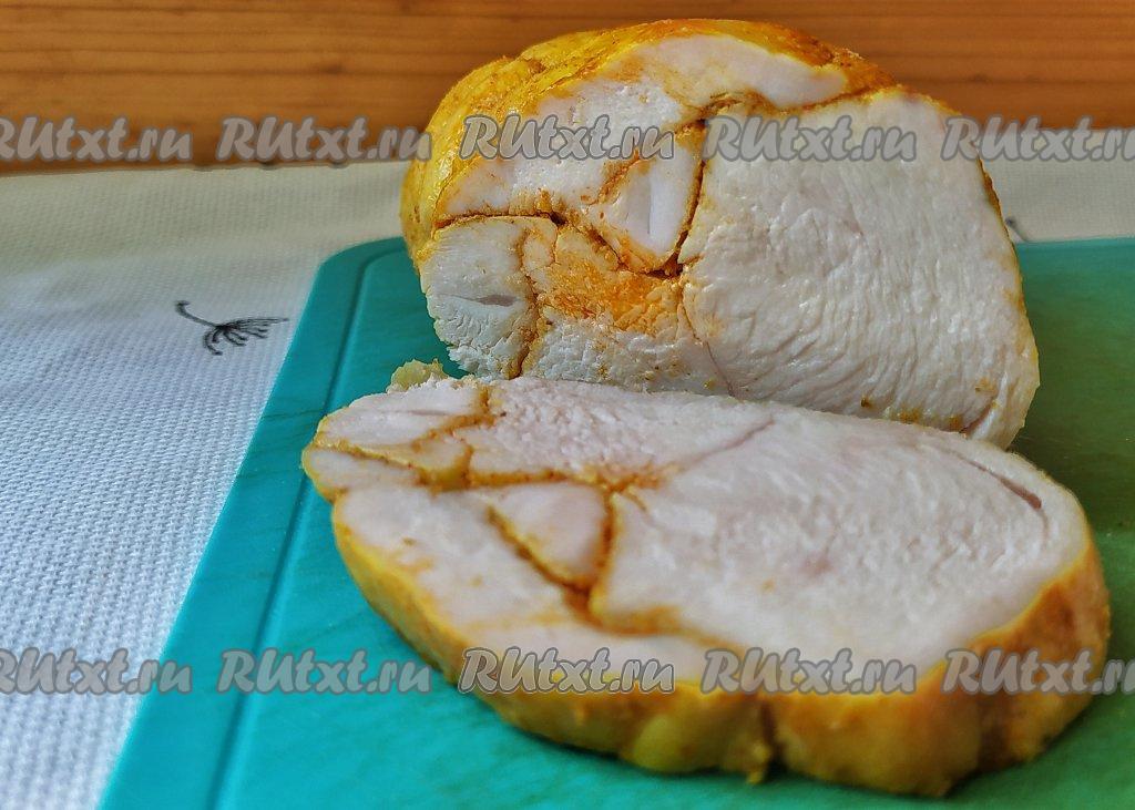 Рулет из куриного филе, запечённый в духовке, - отличная альтернатива покупной колбасе. Блюдо, приготовленное из минимума продуктов по этому рецепту, получается сочным, пряным и очень вкусным. Кусочек такого рулета, выложенный на хлеб, станет отличным бутербродом. Этот рулетик можно подать и на обед или ужин, дополнив гарниром. Он станет и прекрасной основой для приготовления различных салатов. В общем, этот мясной рулет всегда будет к месту и добавит интересные оттенки вкуса и аромат любому блюду!