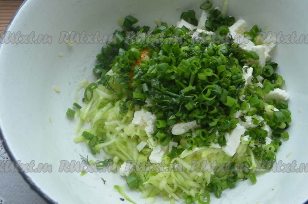 Сыр фета мелко порезать или натереть на терке.