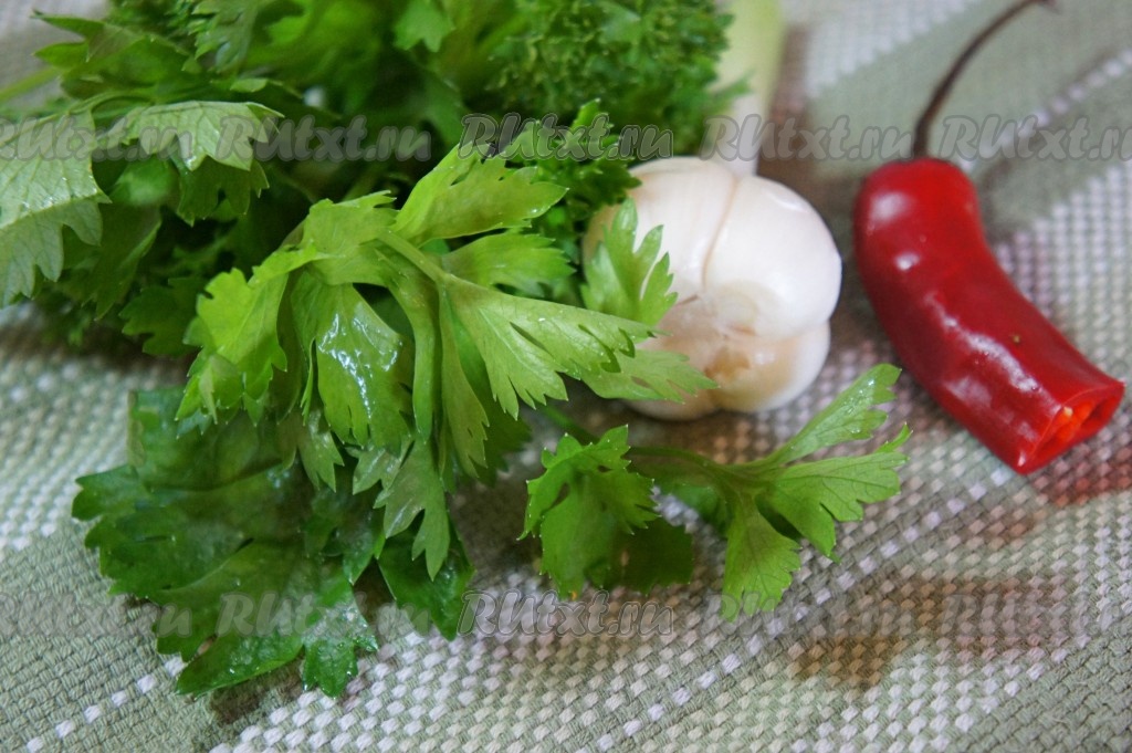 Добавить приготовленные ингредиенты в блендер и пробить до состояния "небольших кусочков".