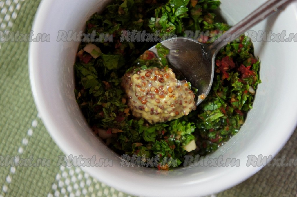 Добавить в соус горчицу и масло, тщательно перемешать. Острый соус к свиному эскалопу готов!