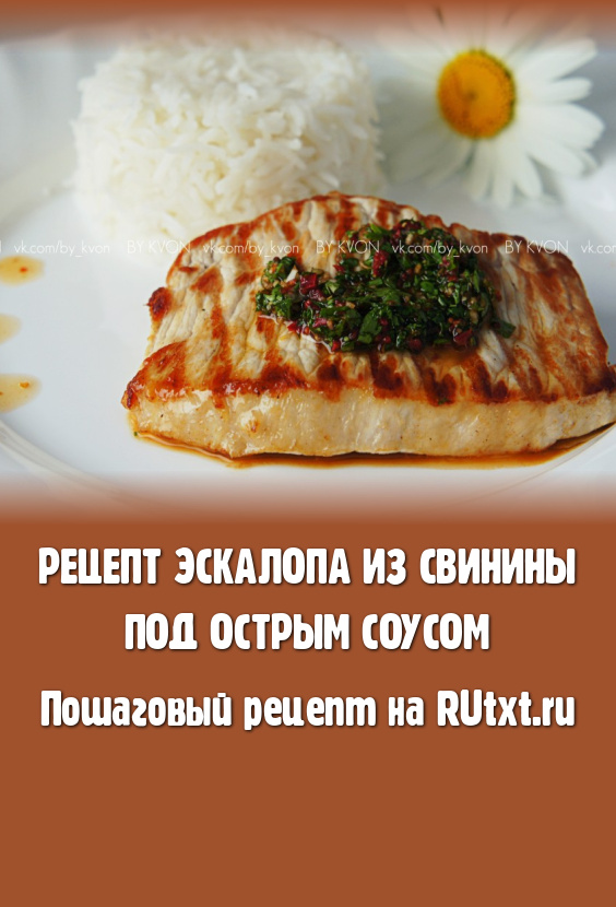 Предлагаю интересный рецепт эскалопа из свинины под острым соусом. По сути, само блюдо предельно простое в приготовлении, однако приятное сочетание сочного мяса на гриле, ароматного острого соуса и пикантный вкус риса Басмати или такой нежный вкус зелёной гречки, не смогут оставить никого равнодушным. Попробуйте, и вы сами в этом убедитесь.