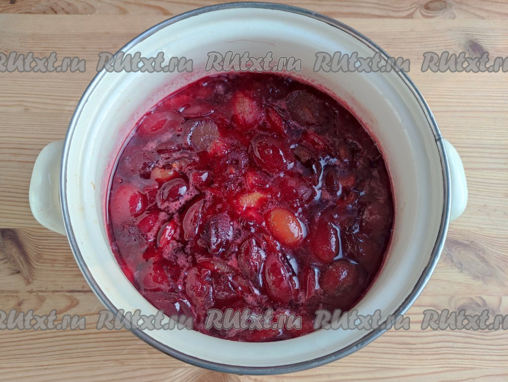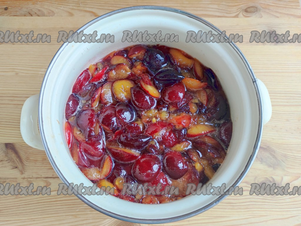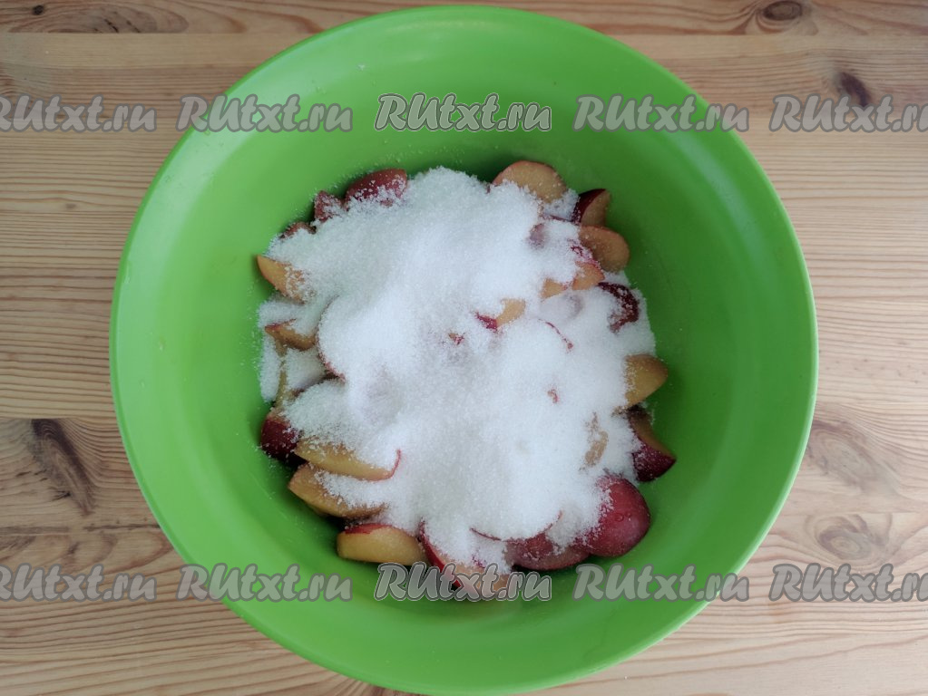 По истечении этого времени алыча пустит сок и смочит сахар.