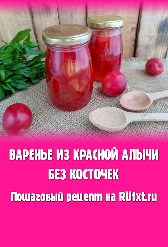 Алыча - достаточно кислый фрукт, из которого можно приготовить наивкуснейшие компоты, варенье или, например, соус "Ткемали". Предлагаю приготовить варенье из красной алычи без косточек. В этих фруктах косточка плотно крепится к мякоти и отделить её довольно сложно, поэтому рекомендую использовать упругие, чуть недозрелые плоды, отрезая мякоть алычи острым ножом и оставляя около косточки достаточную часть фрукта. Из этих косточек можно сварить компот. А из мякоти, отделённой от косточек, будем варить ароматное, красивое и, конечно, вкусное варенье. Рецепт дан из расчёта на 2 банки объёмом 300 мл.