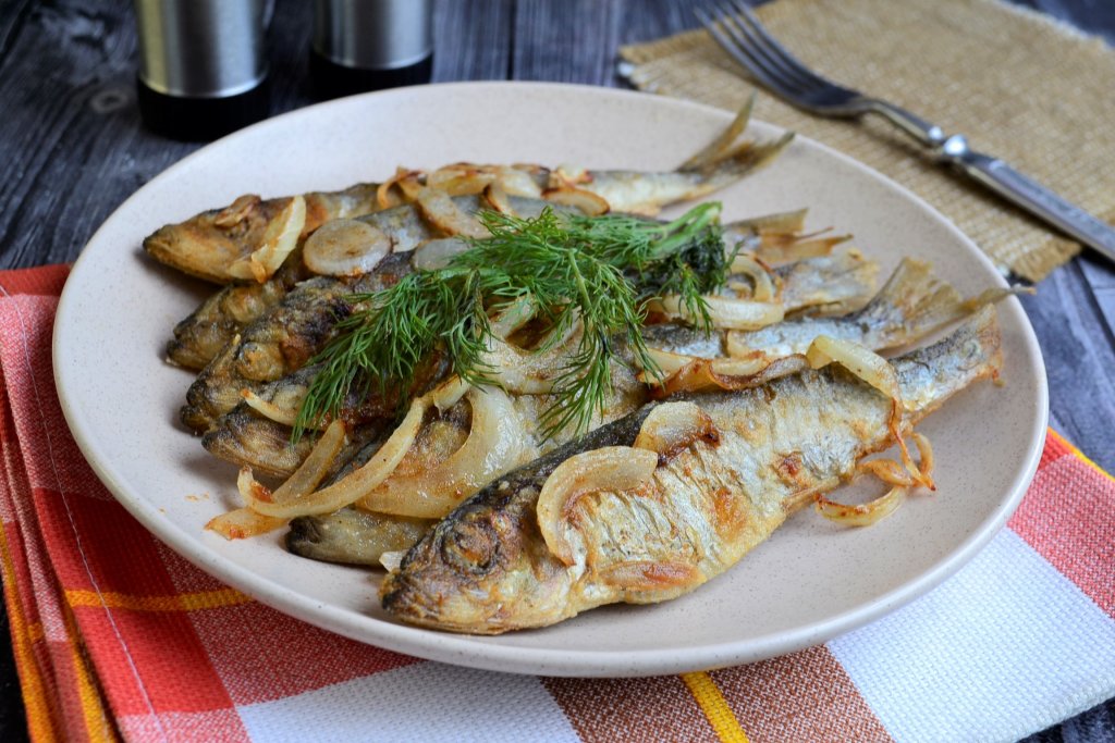 Когда пожарите всю салаку, уберите её со сковороды. А в эту сковороду поместите очищенный и нарезанный полукольцами лук, обжарьте его до мягкости (в течение 3-4 минут). Подавайте рыбу в тёплом виде с жареным луком. Пожарить салаку в муке на сковороде достаточно просто, а рыбка получается такой аппетитной и вкусной, что, наверняка, вам понравится!