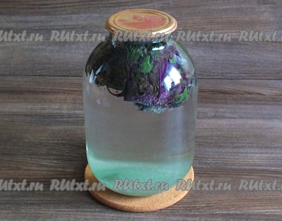 Переверните банку с компотом из базилика, поставьте на крышку, укутайте пледом (или одеялом) и оставьте в таком виде до полного остывания. После перенесите на хранение в прохладное место (например, в подвал).