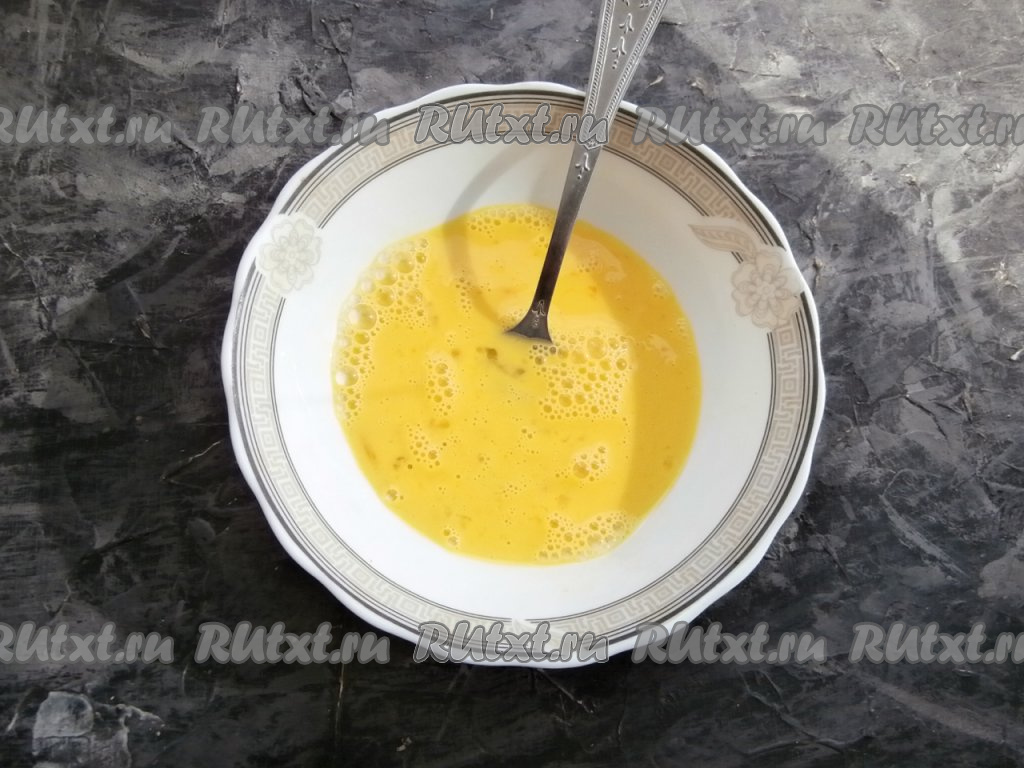 Хорошенько вилкой расколотить яично-молочную смесь.