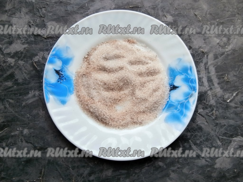 В плоской тарелке смешать сахар и корицу.