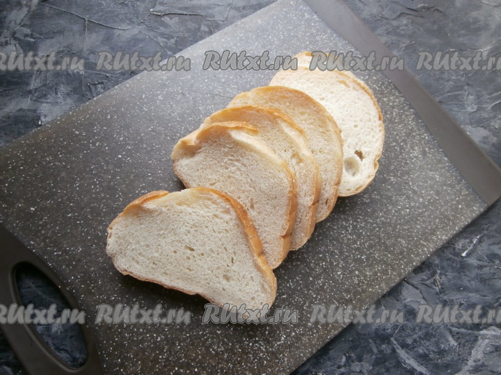 Батон нарезать на ломтики.