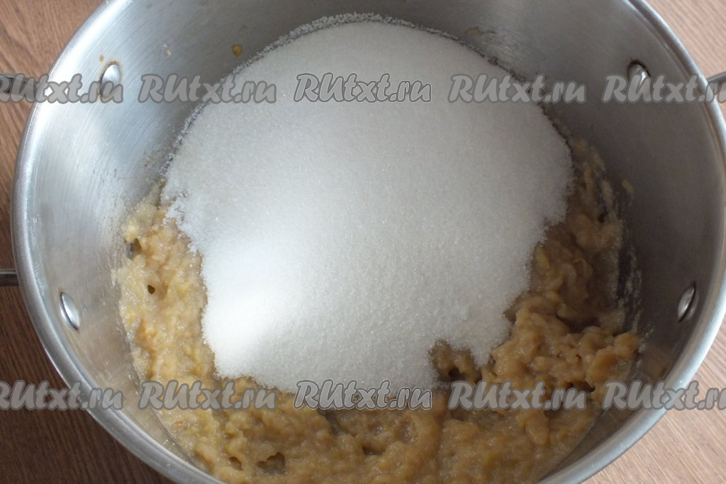 Перемешать яблочное пюре с сахаром, поставить кастрюлю на умеренный огонь и с момента закипания варить 15-20 минут, периодически помешивая, затем снять с огня и дать повидлу полностью остыть.