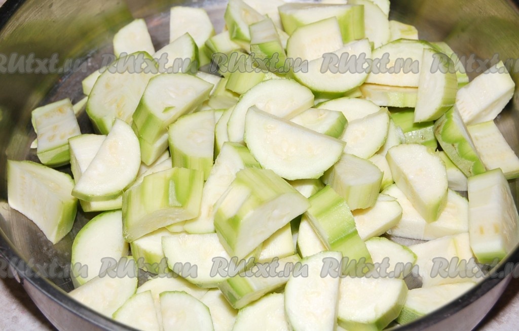 Кабачки нарезать кружочками, выложить на сковороду, добавить смесь растительного и сливочного масел.