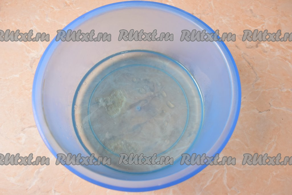 Для приготовления галетного теста соедините в достаточно глубокой миске растительное масло и очень горячую воду, перемешайте.