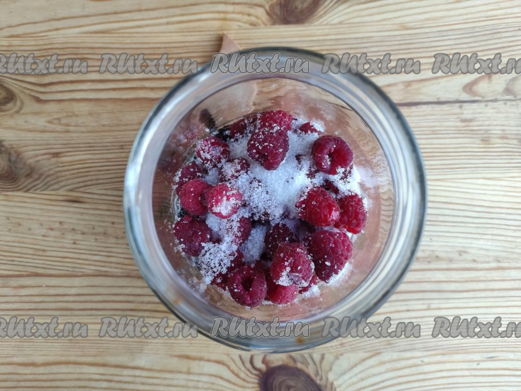 Если малина чистая, собранная со своего огорода, то её не моют. При необходимости, можно поместить малину в дуршлаг, опустить в кастрюлю с холодной водой и промыть. Выложить малину в банку поверх ежевики.