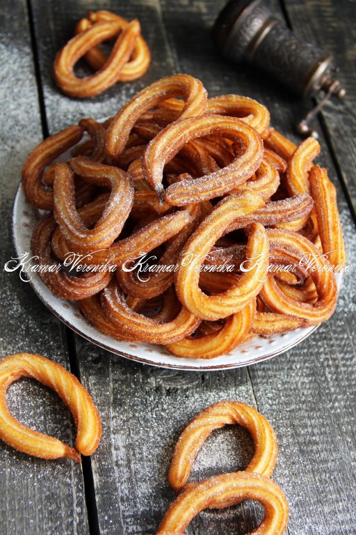 Чуррос - это вкусный десерт или выпечка к чаю. Приготовить "Чуррос" в домашних условиях совсем несложно. Готовится он из заварного теста, обжаренного во фритюре, ему можно придать форму завитков или палочек. Выпечка получается очень вкусной, ароматной, нежной внутри и слегка хрустящей снаружи. Перед подачей чуррос лучше всего щедро присыпать сахарной пудрой, смешанной с корицей. Очень вкусно кушать этот десерт, макая его в растопленный шоколад или сгущёнку.