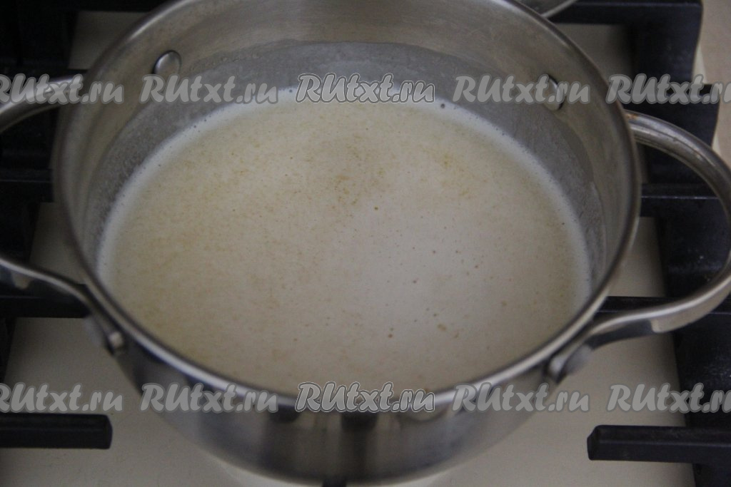 Поставить кастрюлю на средний огонь и довести, помешивая, смесь до кипения и растворения всех ингредиентов.