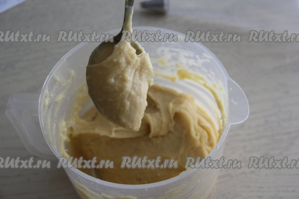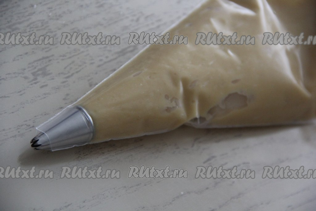 Переложить тесто в кулинарный мешок с тонкой, фигурной насадкой.