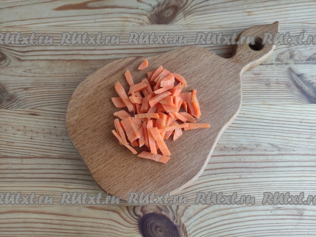 Очищенную морковку нарезать на достаточно тонкие брусочки.