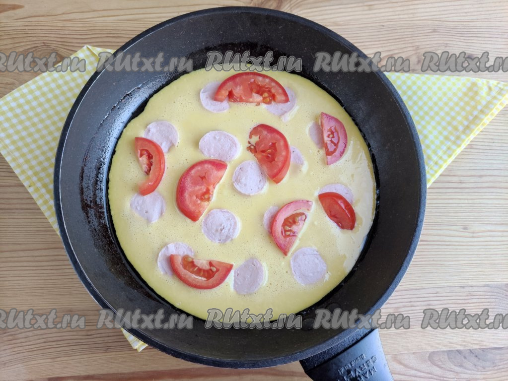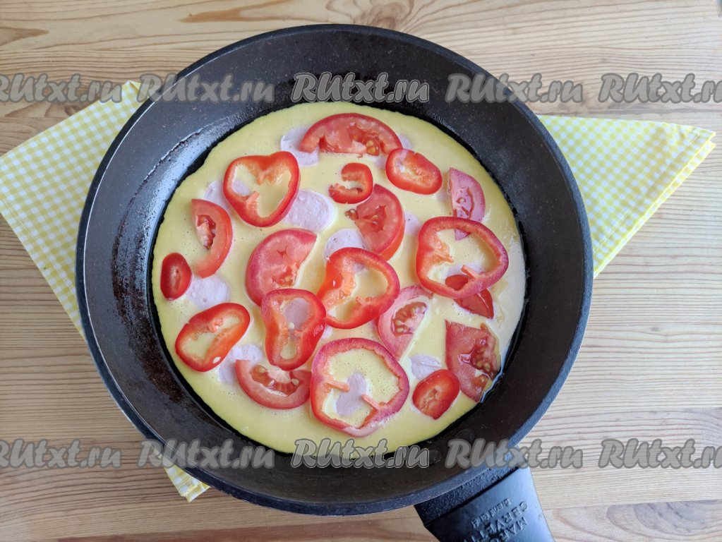 Сверху выложить помидоры, нарезанные на полукружочки (или кружочки).
