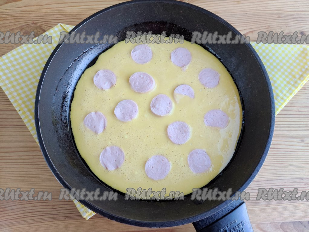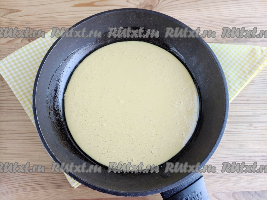 Холодную сковороду смазать растительным маслом. Вылить тесто.