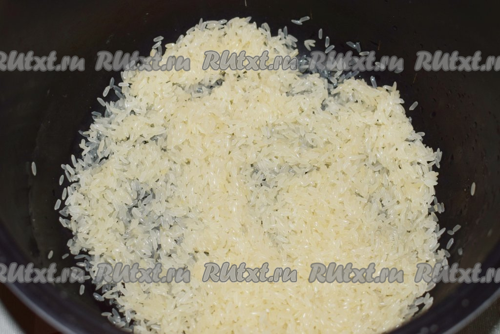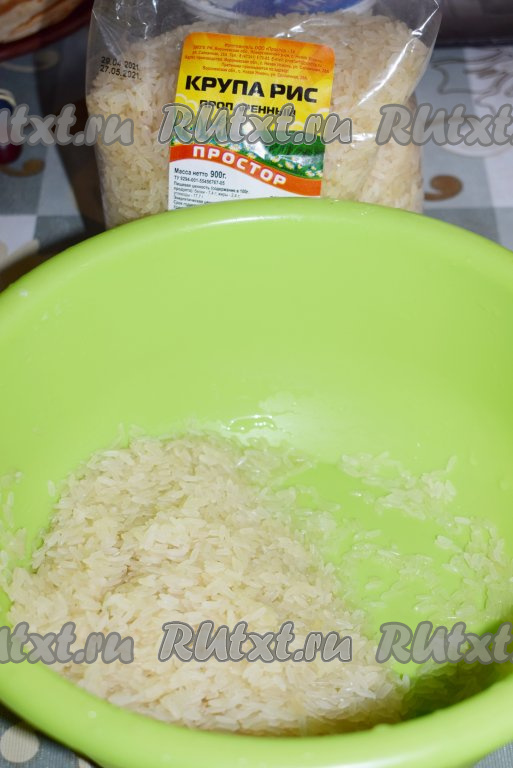 Рис промоем в холодной воде до прозрачности воды (для этого рис нужно залить холодной водой, промыть его, а затем слить воду, после того как вы повторите эту процедуру 4-5 раз, вода станет прозрачной).