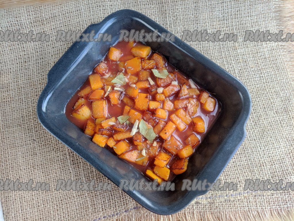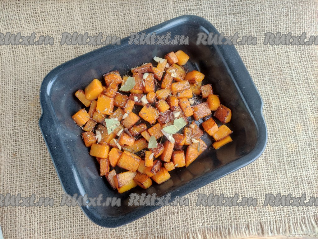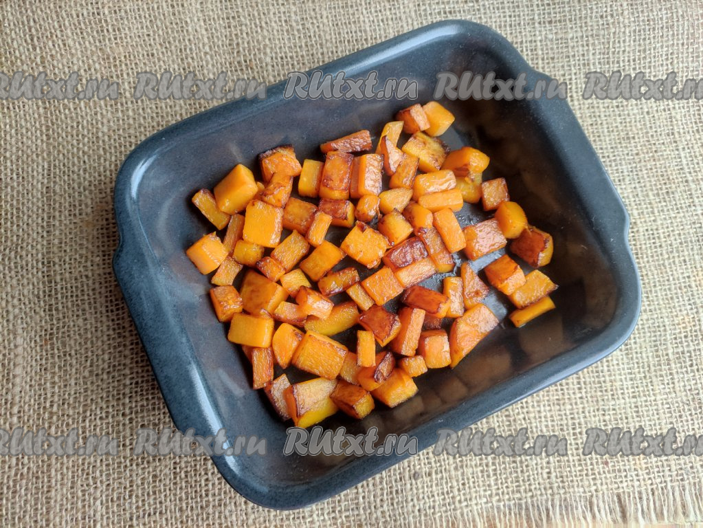 Тыкву, зарумянившуюся со всех сторон, переложить в форму для запекания.