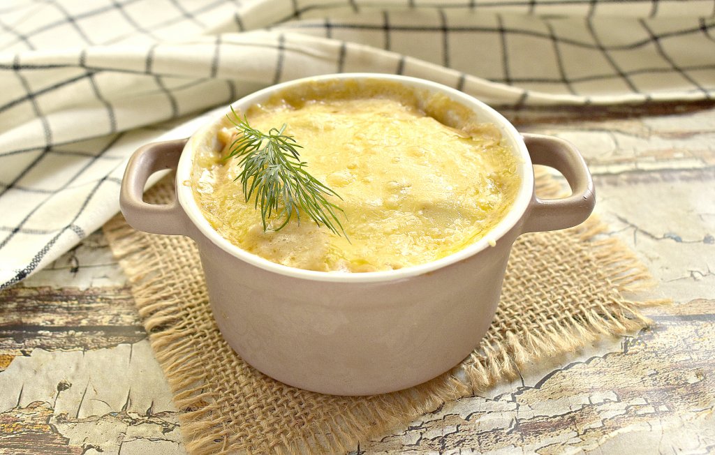 Формы с грибным жульеном ставим в духовку, разогретую до 180 градусов, на 10 минут. За это время сыр расплавится и на поверхности получится аппетитная корочка.
