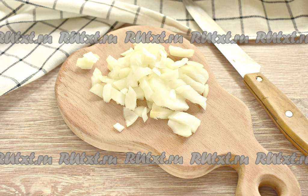 Очищаем лук и нарезаем его достаточно мелко.