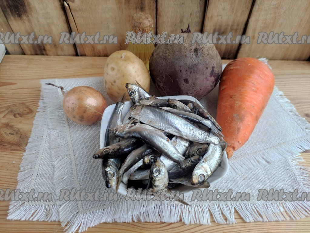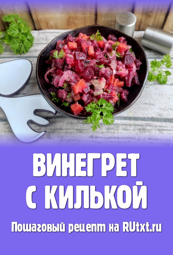 Винегрет - популярный салат из овощей. Классический винегрет готовится из отварных картофеля, моркови и свеклы. Иногда в винегрет добавляют различные дополнительные ингредиенты: солёные или квашеные овощи, грибы, бобовые, рыбу и даже мясо. Сегодня хочу предложить вам попробовать винегрет с килькой, он более сытный, чем классический вариант этого салата, да и, на мой взгляд, вкус у него более интересный. Для этого рецепта понадобится килька пряного посола. Заправить салат можно подсолнечным или оливковым маслом.