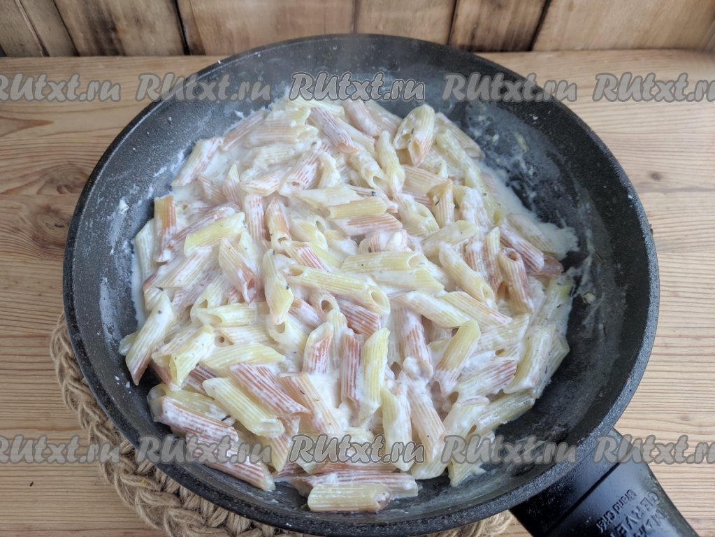 Плавленный сыр растворится, макаронные изделия впитают молоко и покроются сливочным соусом.