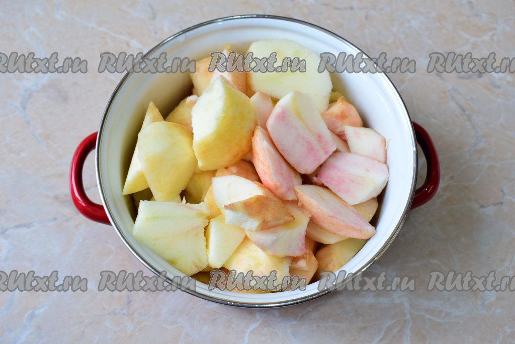 Удалите из яблок сердцевину и нарежьте на кусочки. Нарезанные яблоки сразу выложите в кастрюлю, в которой будете варить повидло.