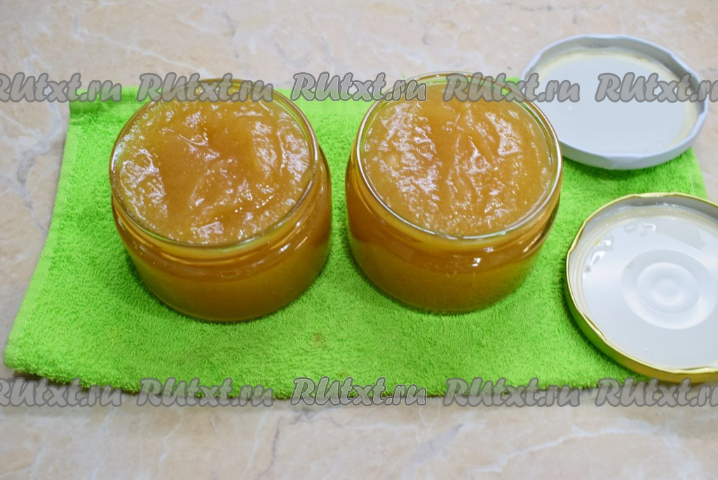 Наполните банки горячим повидлом, закрутите (или закатайте) банки крышками и остудите, укутав тёплым одеялом. Остывшие баночки уберите в прохладное место на хранение. У меня получилось 4 баночки повидла по 300 мл и немного осталось на пробу.