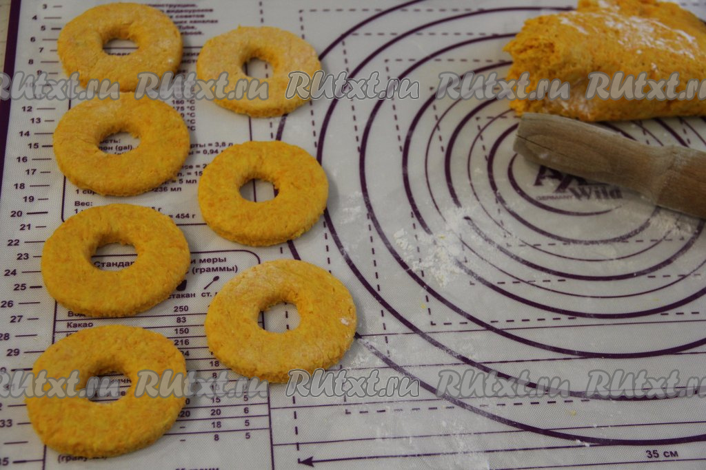 Раскатать тесто скалкой в пласт толщиной, примерно, 1 см. Вырезать пончики любой формы.