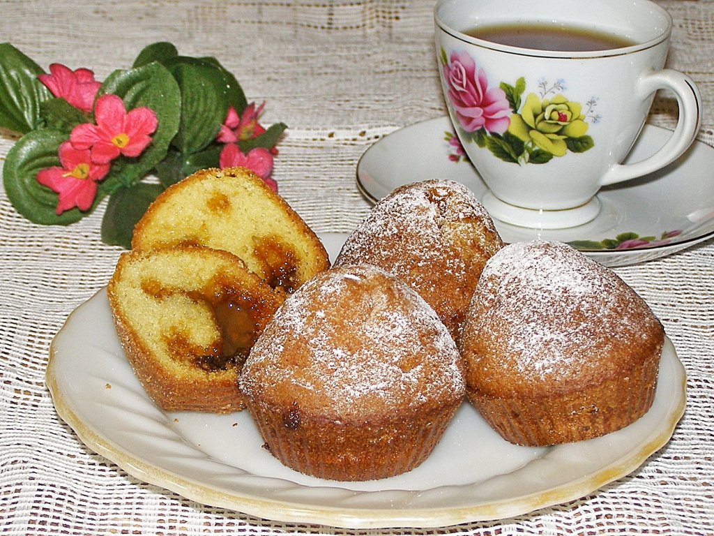 Любители сладкой выпечки, наверняка, по достоинству оценят рецепт кексов с начинкой из варёной сгущёнки, испечённых в силиконовых формочках в духовке. Готовить такие кексы несложно. Получаются они очень мягкими, нежными и необыкновенно вкусными. Такие кексы отлично подойдут для чаепития в кругу близких и друзей, попробуйте!