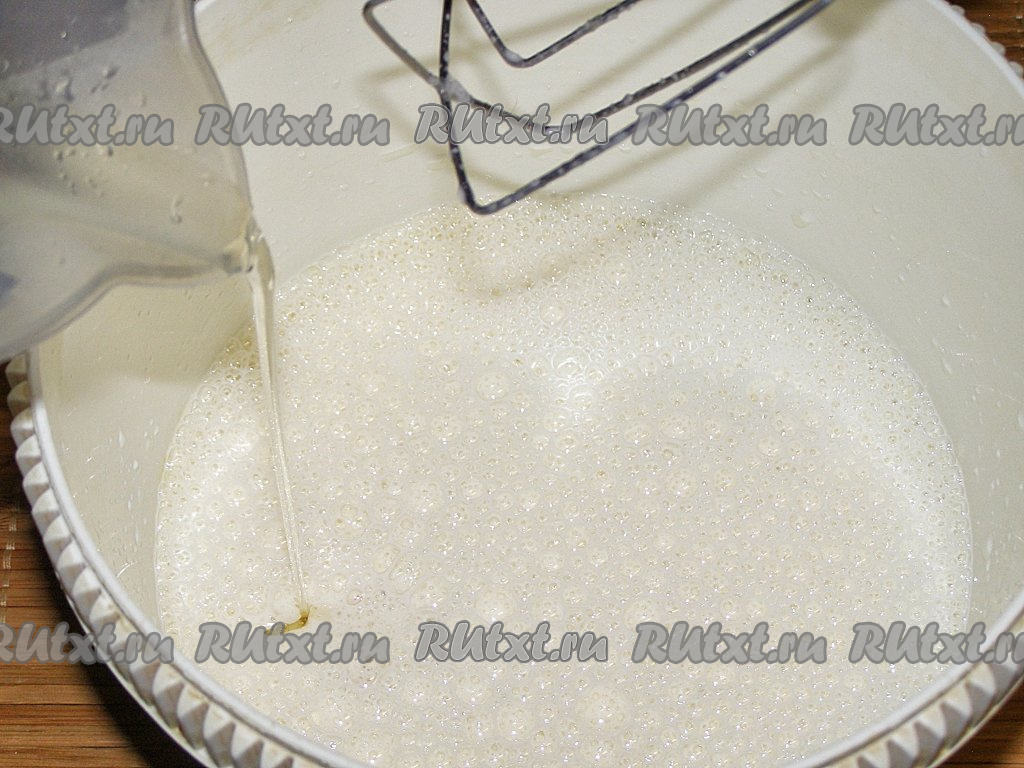 В получившуюся смесь добавляем подсолнечное масло и ещё раз перемешиваем молочно-масляную смесь.