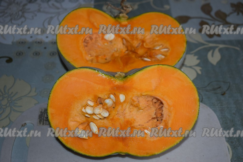 Готовность тыквы проверяем, надавливая вилкой на мякоть. Если мякоть мягкая и легко раздавливается - тыква готова.