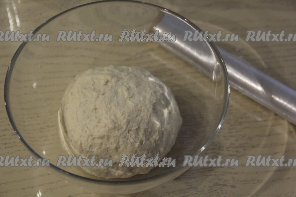 Миску с тестом накрыть пищевой плёнкой и убрать в тепло на 1 час.