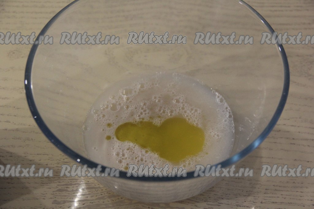 По прошествии 10-15 минут опара оживёт, на поверхности появятся пузыри. В достаточно глубокую миску влить подошедшую опару, добавить растительное масло.
