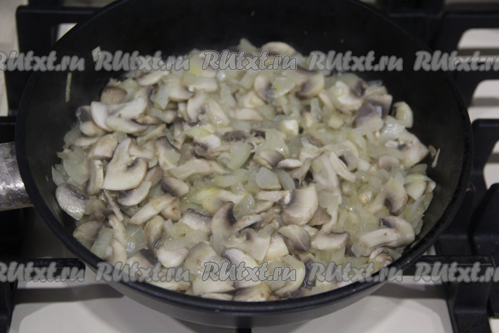 Обжаривать грибы с луком минут 10, периодически перемешивая.