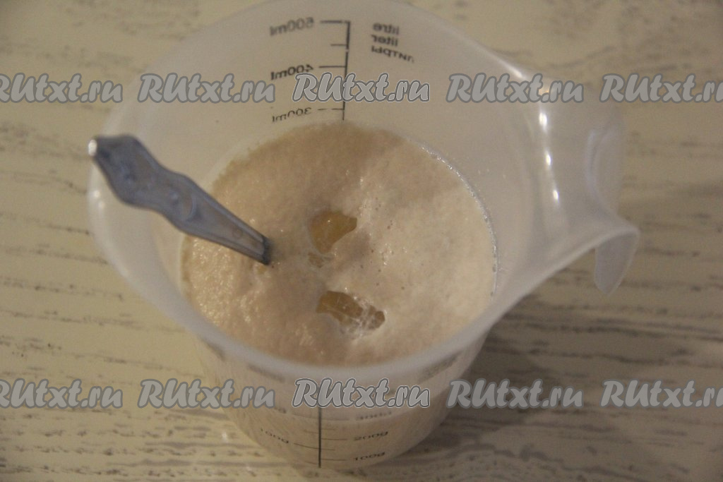 Первым делом приготовим опару для дрожжевого теста, для этого в тёплой воде нужно развести дрожжи и сахар, перемешать и оставить на 10-15 минут.