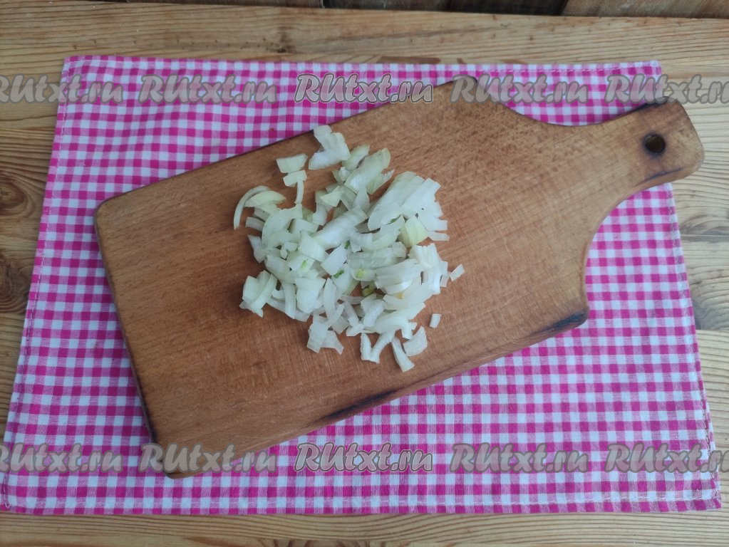 Лук очистить от шелухи, обмыть и нарезать как можно мельче.