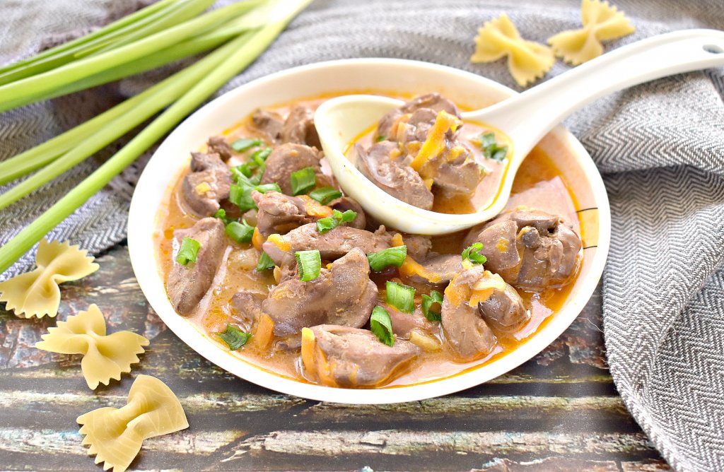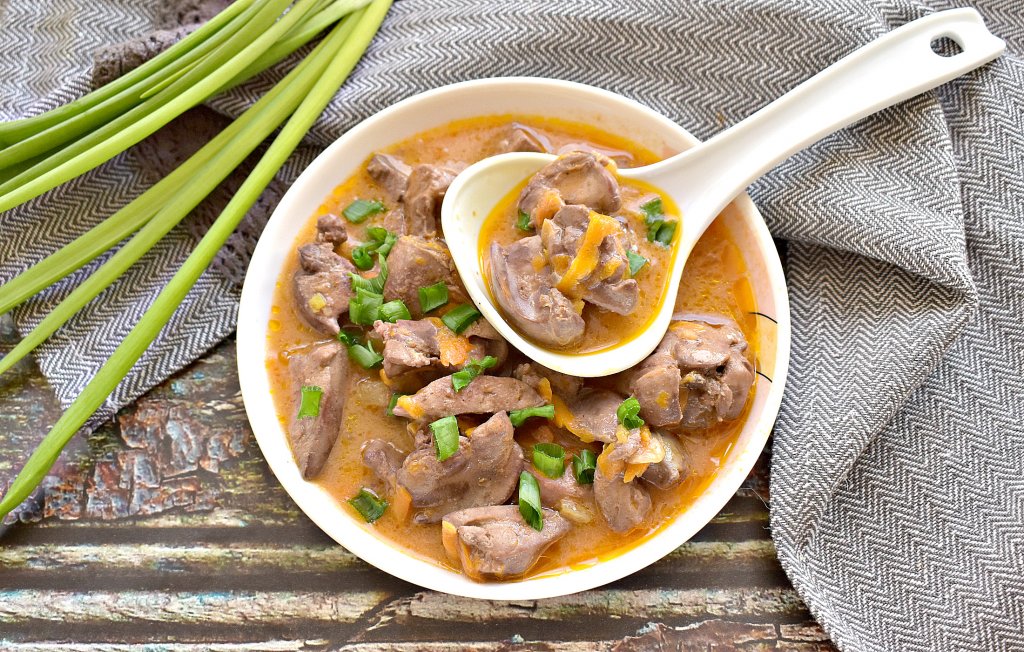 После окончания программы мультиварки вкусная, сочная, мягкая тушёная куриная печень будет готова, подаём её к столу с гарниром, поливая его аппетитной подливкой. Угощайтесь!